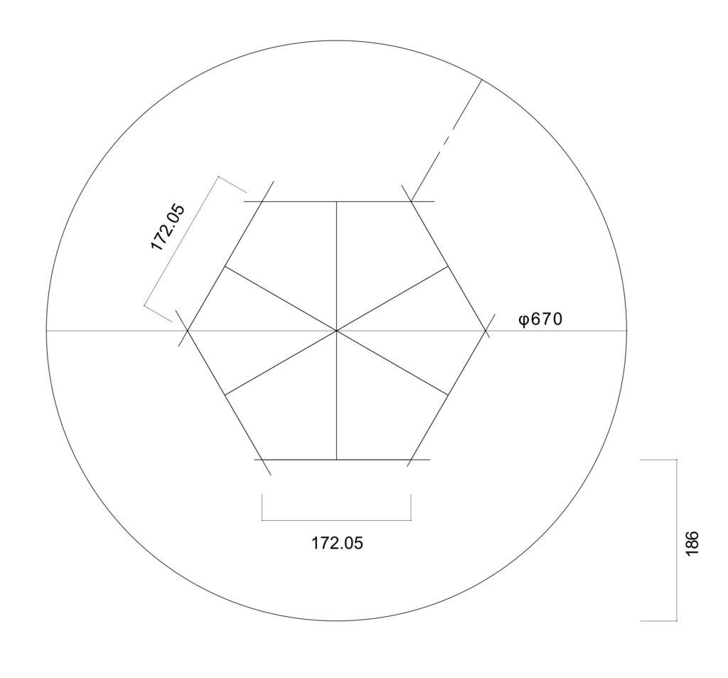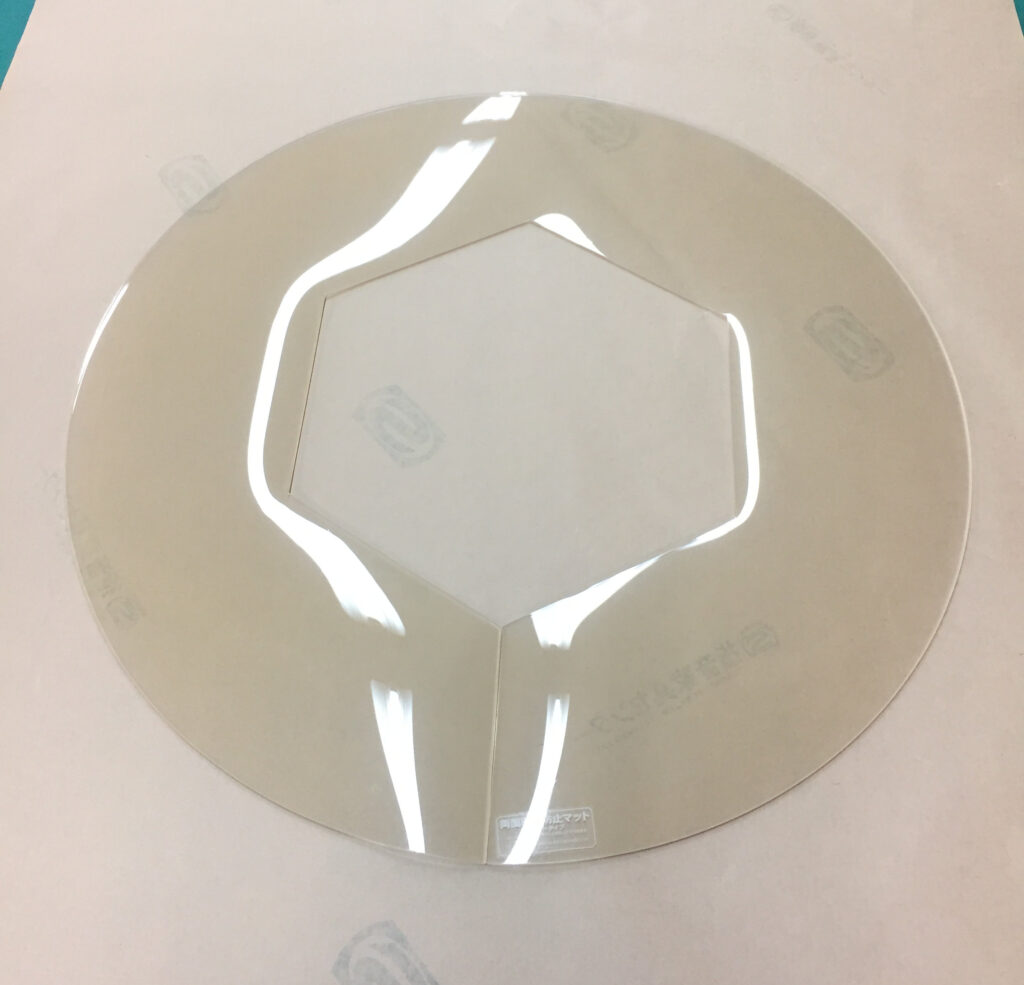 ご依頼いただいたのは、**「直径67cmの円形の中に、六角形の穴をくり抜く」**という、非常に特殊な形状のマットです。
