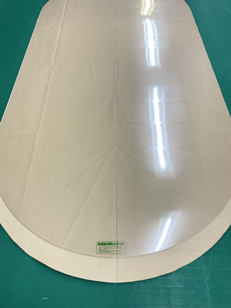 このように、形状が「半円形」だと特定できるテーブルの場合、実は型紙をお取りいただかなくても、縦と横の最大サイズをお伝えいただくだけで作成が可能な場合が多いのです。